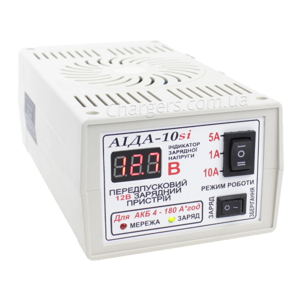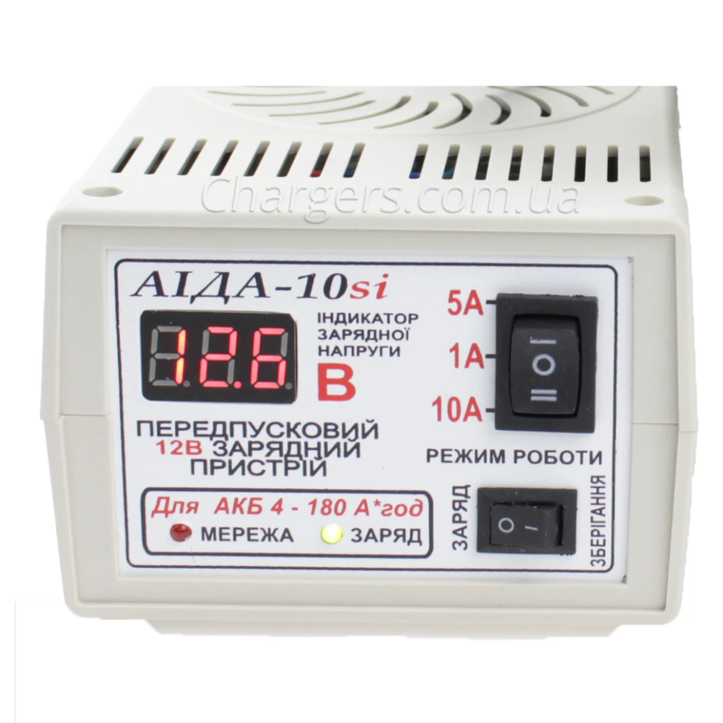 Автомобільний зарядний пристрій Аіда 10si струм заряду 1А/5А/10А — сучасний зарядні пристрої для АКБ для 12V АКБ із режимами струму 1A, 5A, 10A. Підходить для MF, VRLA, WET, Свинцово-кислотный, EFB, AGM, GEL. Гарантія: 12 міс. Виробництво: Україна.