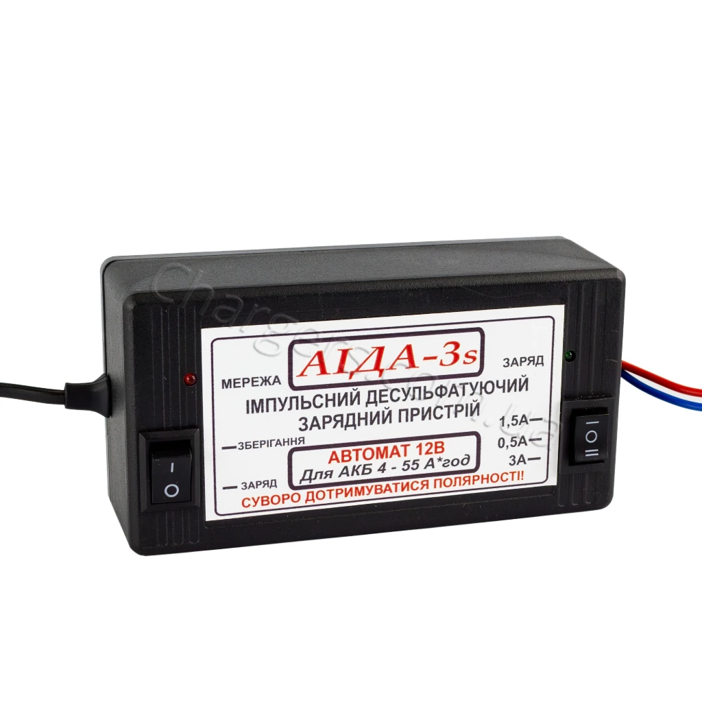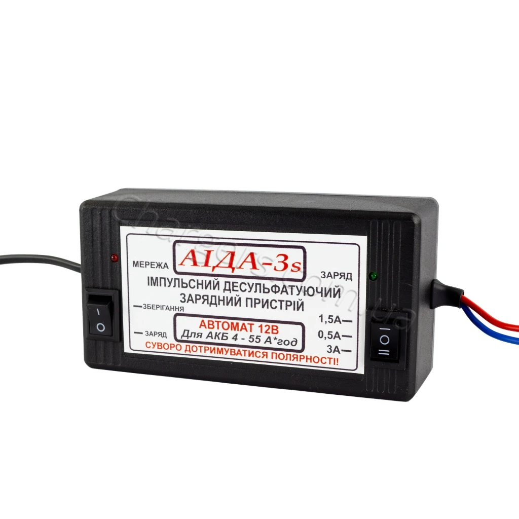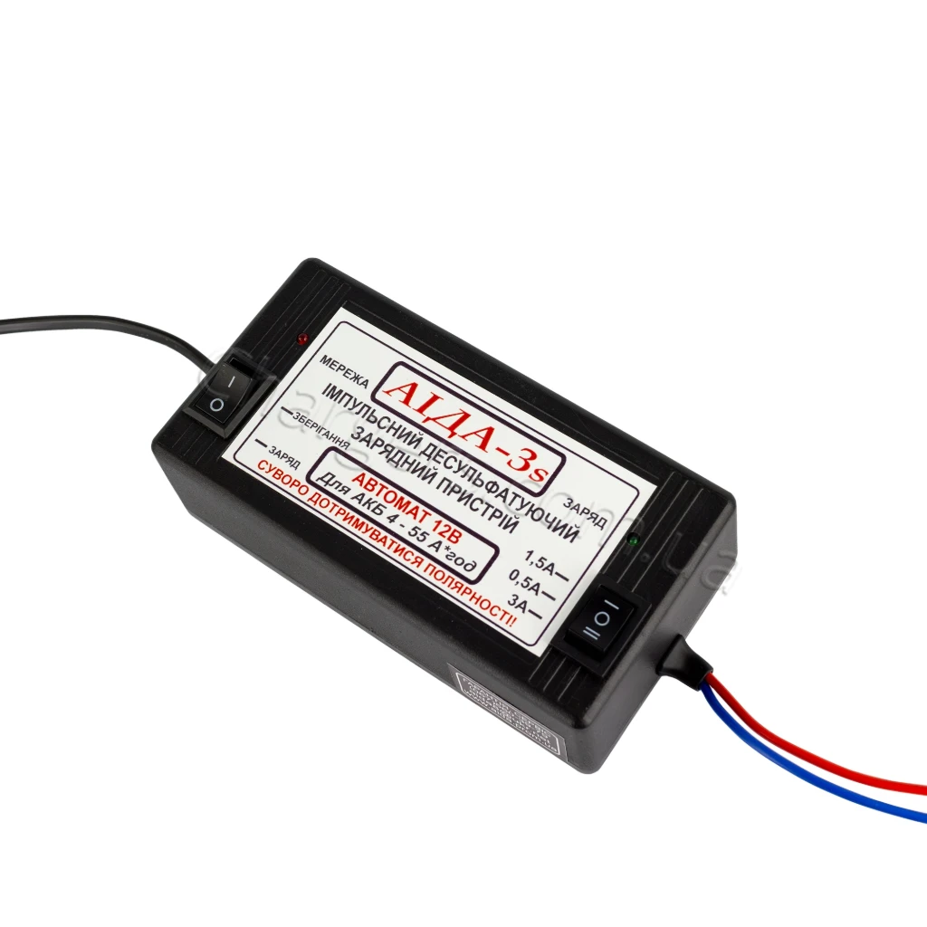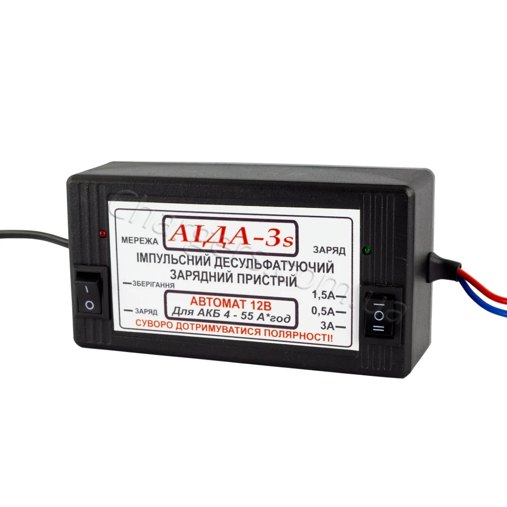 Розумний зарядний пристрій Аіда 3s струм заряду 0.5А/1.5А/3А — сучасний зарядні пристрої для АКБ для 12V АКБ із режимами струму 0.5A, 1.5A, 3A. Підходить для MF, VRLA, WET, Свинцево-кислотний, EFB. Гарантія: 12 міс. Виробництво: Україна.