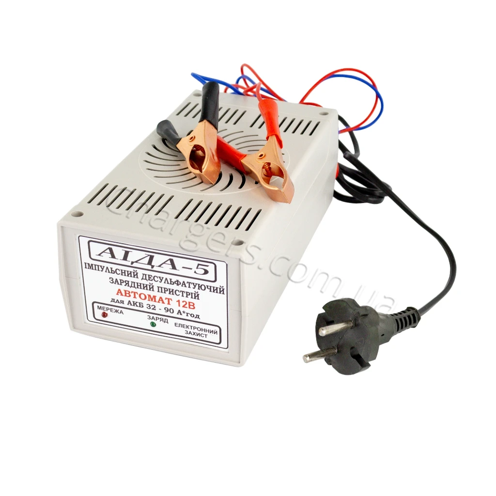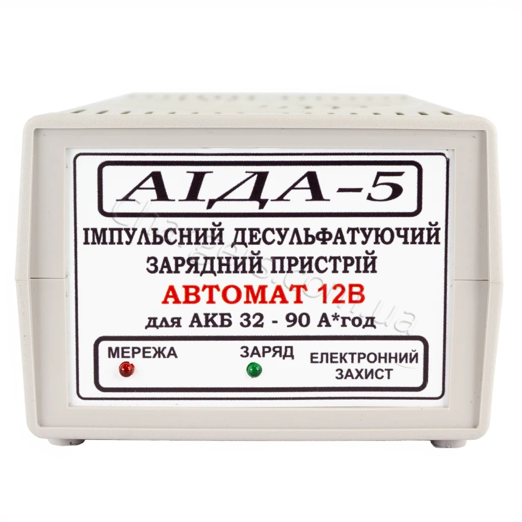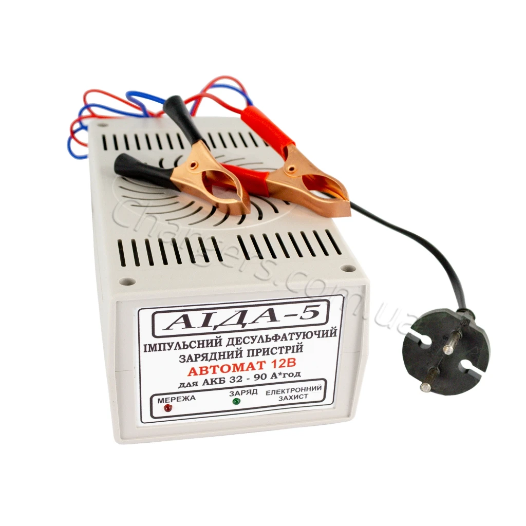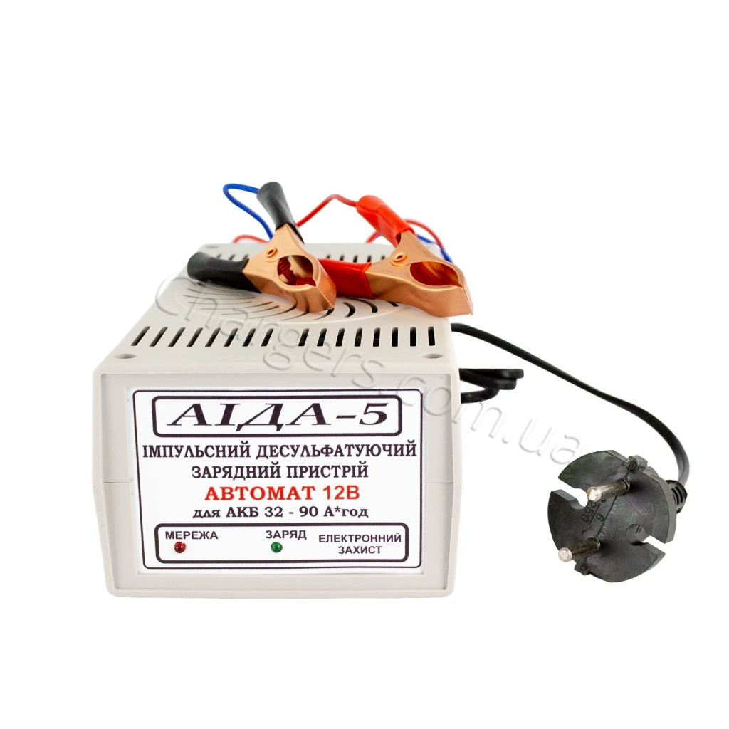 Зарядка для автомобільної АКБ Аіда 5 струм заряду 5.5А — сучасний зарядні пристрої для АКБ для 12V АКБ із режимами струму 5A. Підходить для MF, VRLA, WET, Свинцево-кислотний, EFB. Гарантія: 12 міс. Виробництво: Україна.