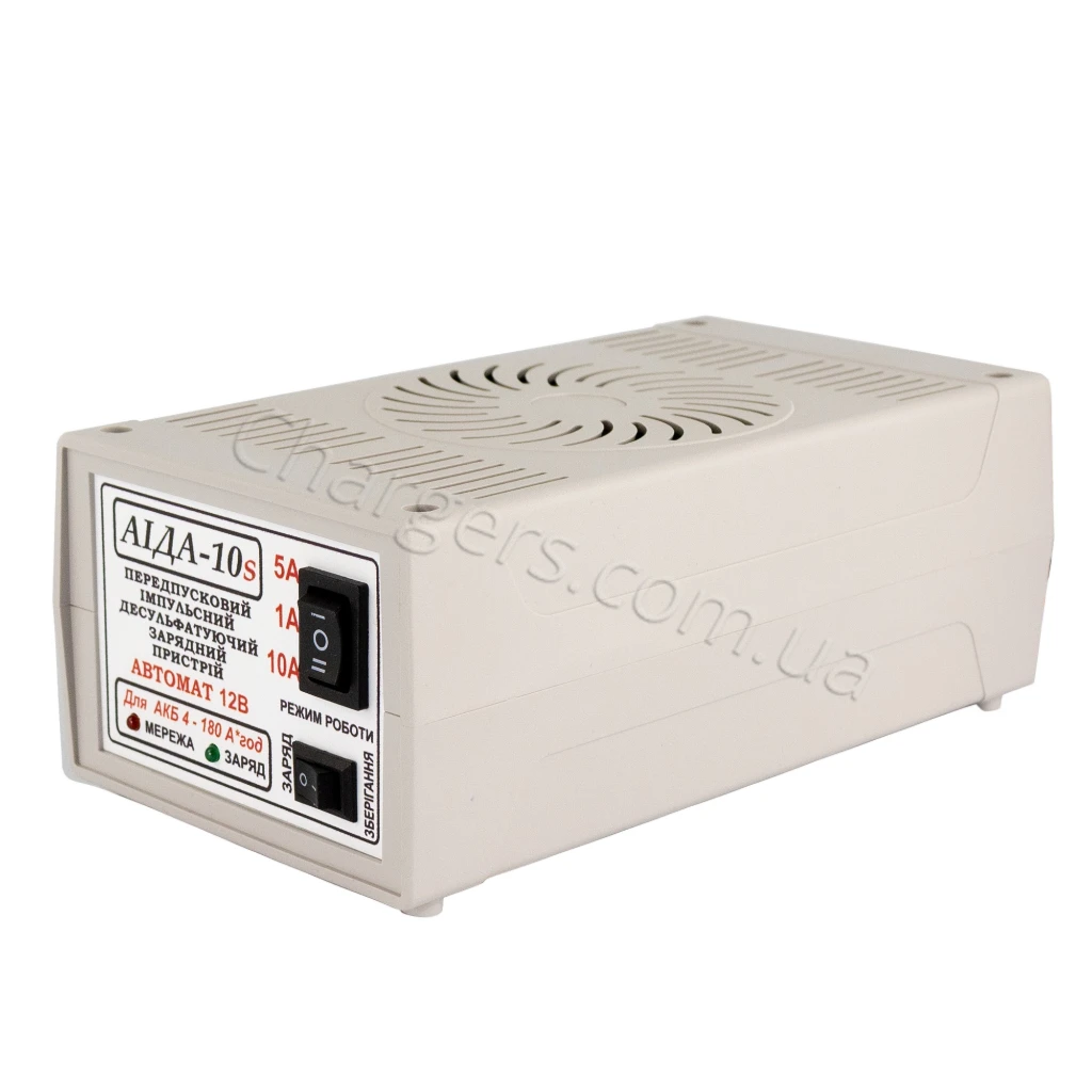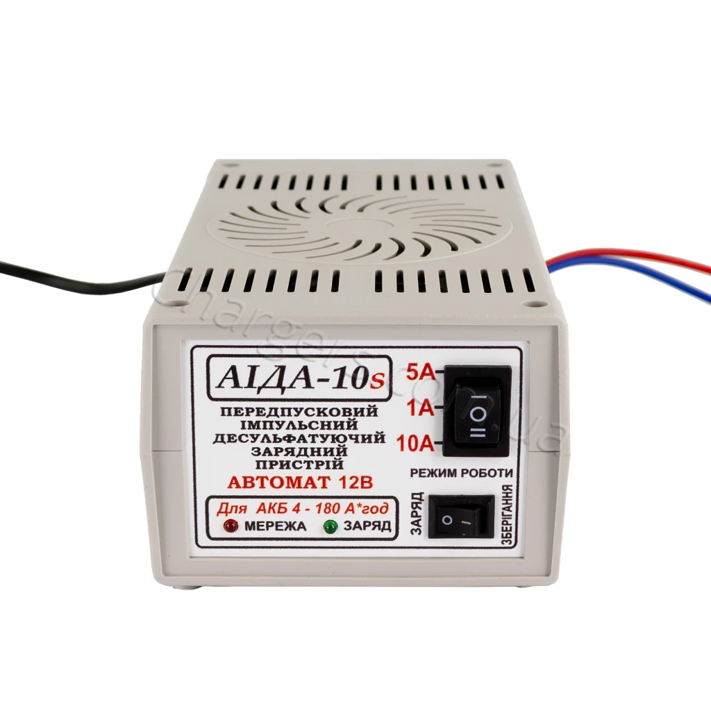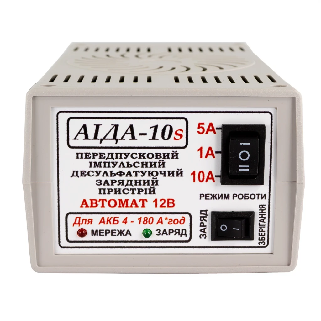 Зарядне з функцією відновлення Аіда 10s струм заряду 1А/5А/10А — сучасний зарядні пристрої для АКБ для 12V АКБ із режимами струму 1A, 5A, 10A. Підходить для MF, VRLA, WET, Свинцево-кислотний, EFB. Гарантія: 12 міс. Виробництво: Україна.