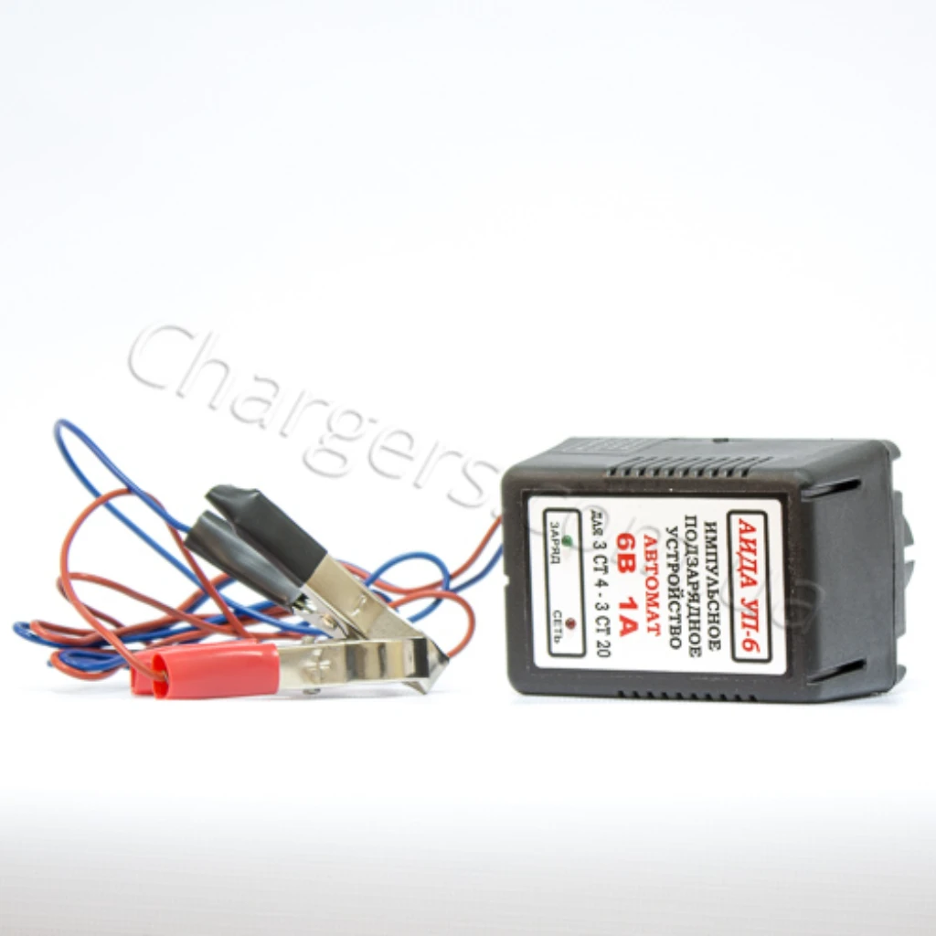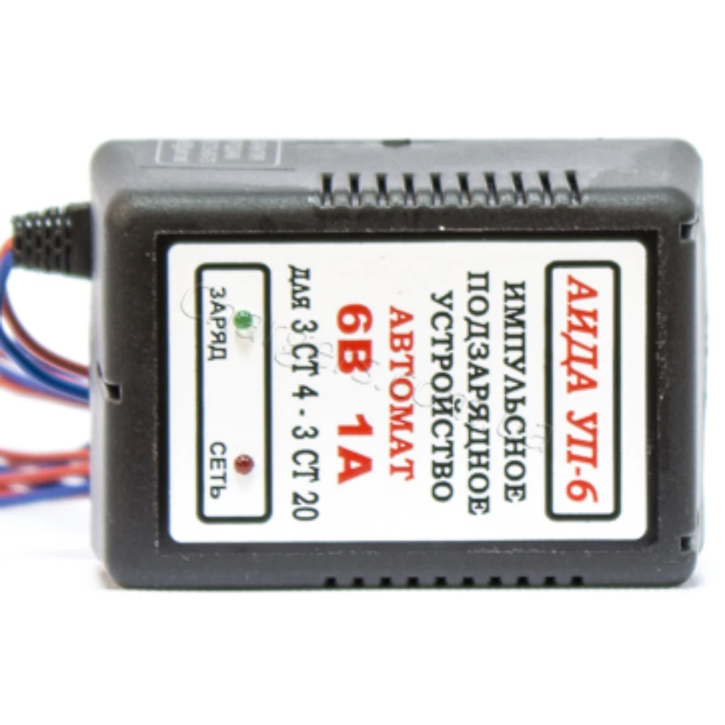 Зарядний для дитячих машинок Аіда УП-6 струм заряду 1А — сучасний зарядні пристрої для АКБ для 6V АКБ із режимами струму 0.5A. Підходить для MF, VRLA, WET, Свинцево-кислотний, EFB, AGM. Гарантія: 12 міс. Виробництво: Україна.