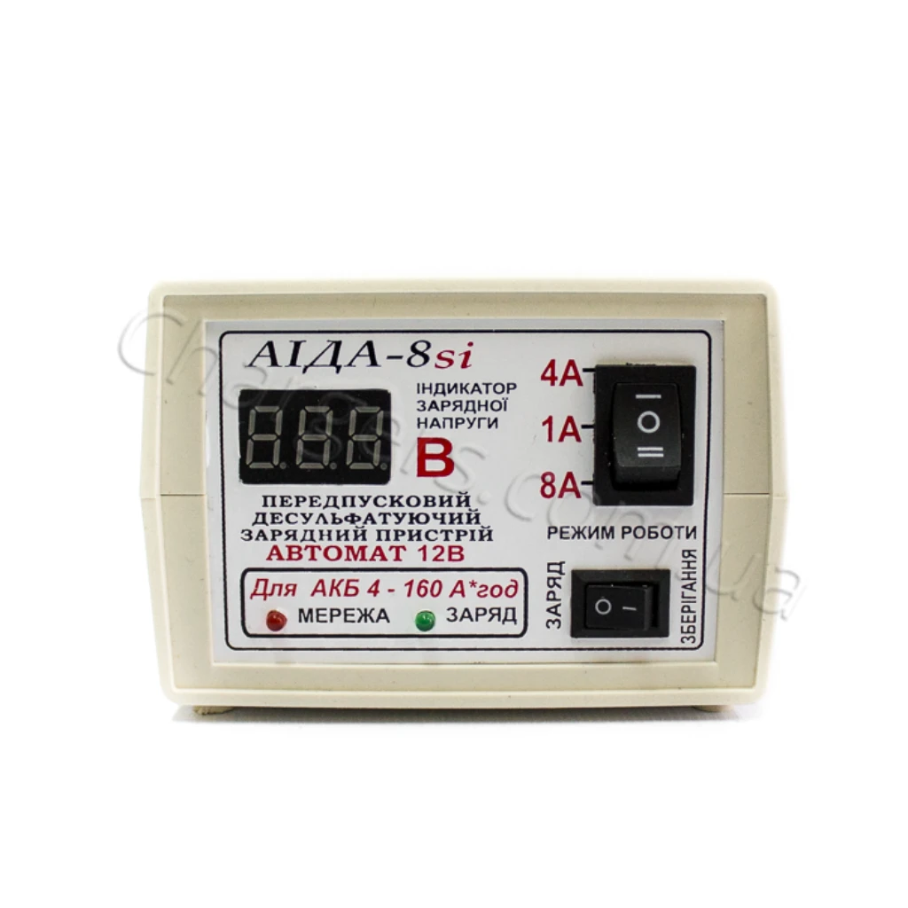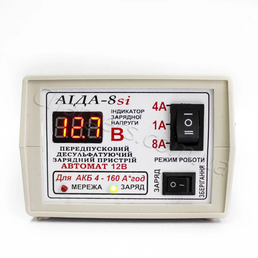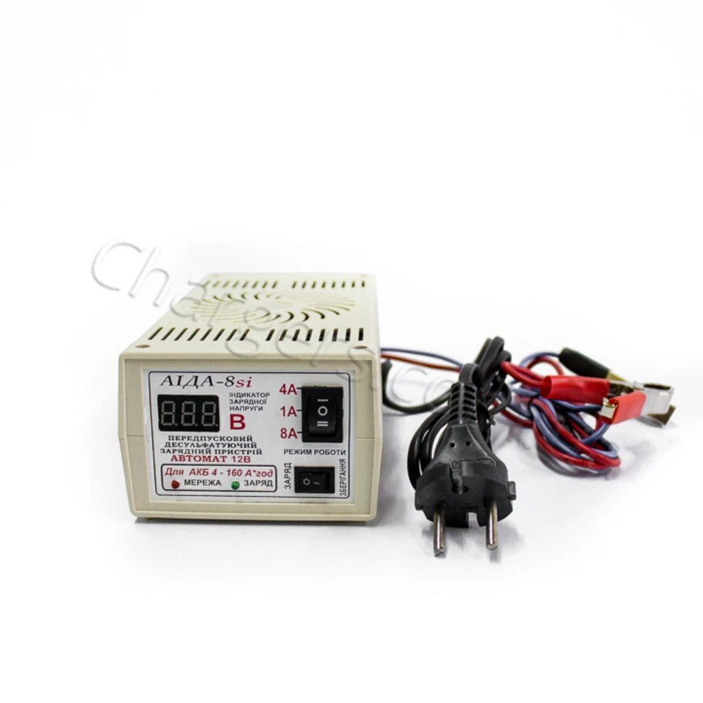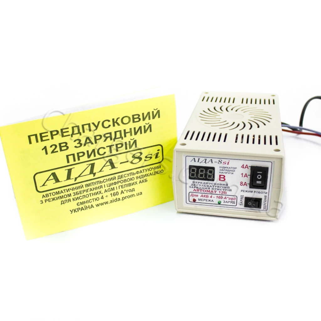 Зарядний пристрій 12В з дисплеєм Аіда 8si струм заряду 1А/5А/10А — сучасний зарядний пристрій 12 В для 12V АКБ із режимами струму 4A, 8A, 1A. Підходить для MF, VRLA, WET, Свинцево-кислотний, EFB, AGM, GEL. Гарантія: 12 міс. Виробництво: Україна.