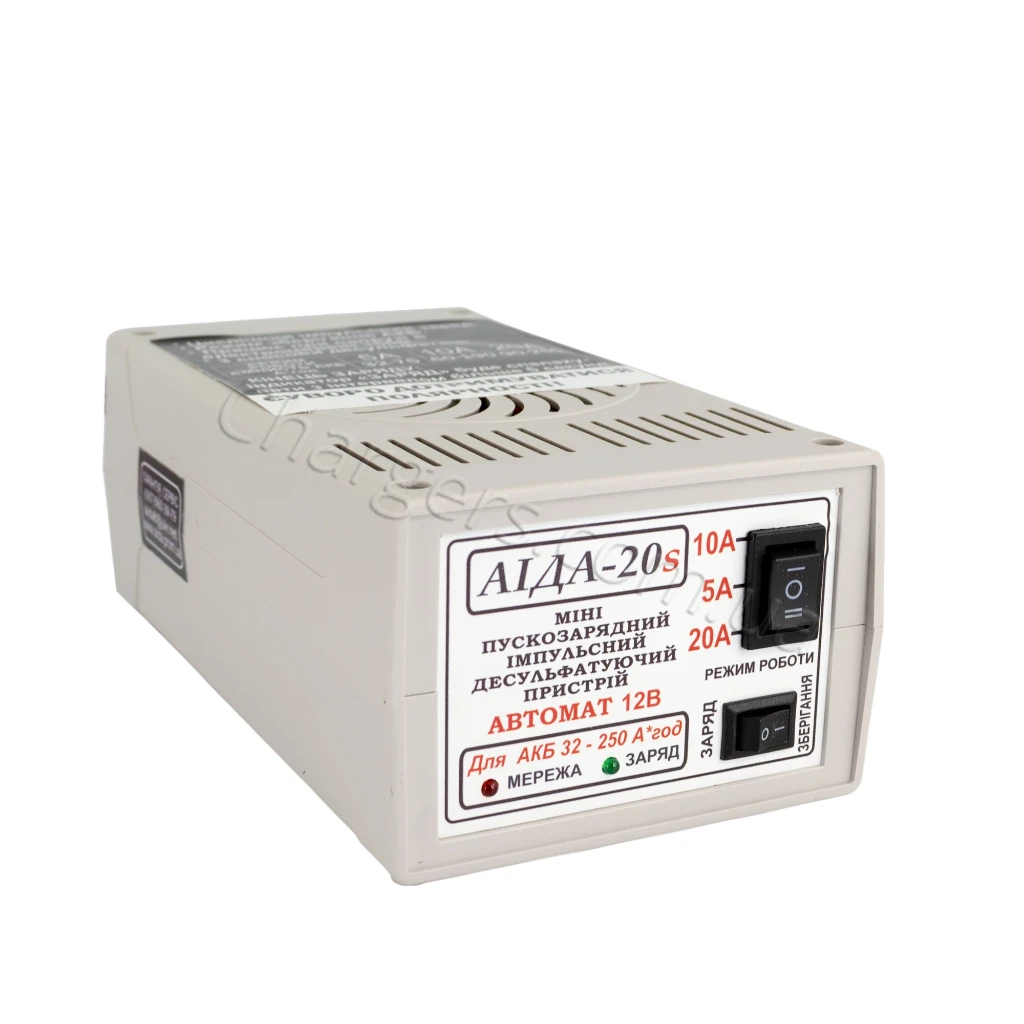Зарядний пристрій для AGM/GEL АКБ Аіда 20s струм заряду 5А/10А/20А — сучасний зарядні для AGM та GEL для 12V АКБ із режимами струму 5A, 10A, 20A. Підходить для MF, VRLA, WET, Свинцево-кислотний, EFB, AGM, GEL. Гарантія: 12 міс. Виробництво: Україна.
