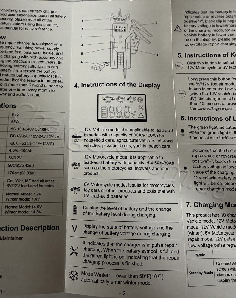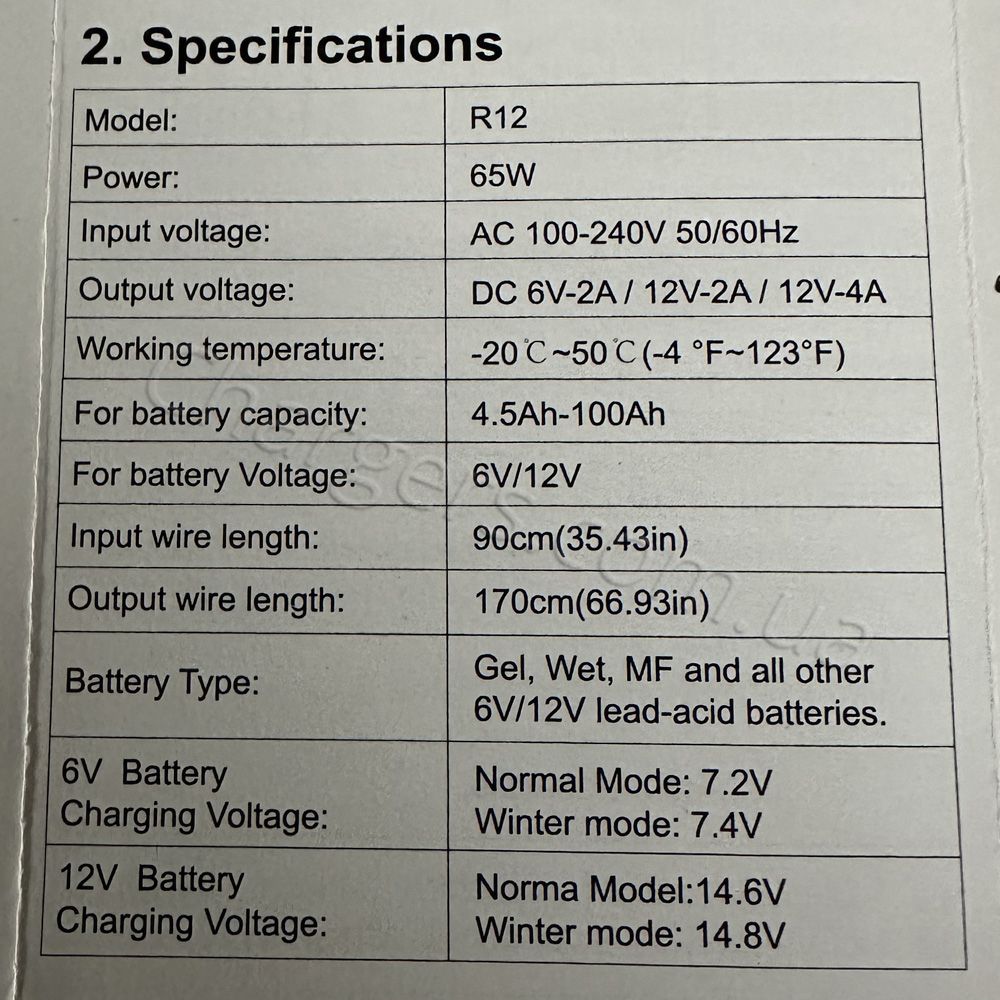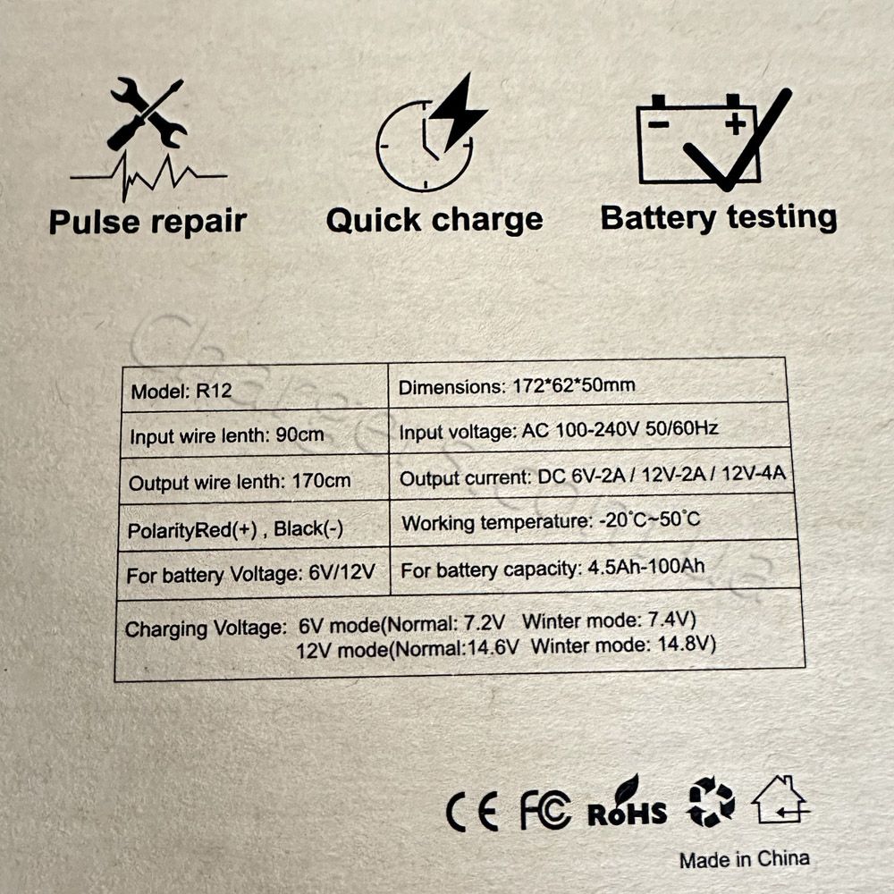Сумісний із типами: MF, VRLA, WET, Свинцево-кислотний, EFB, AGM, GEL. Діапазон/режими струму: 2A, 4A.
