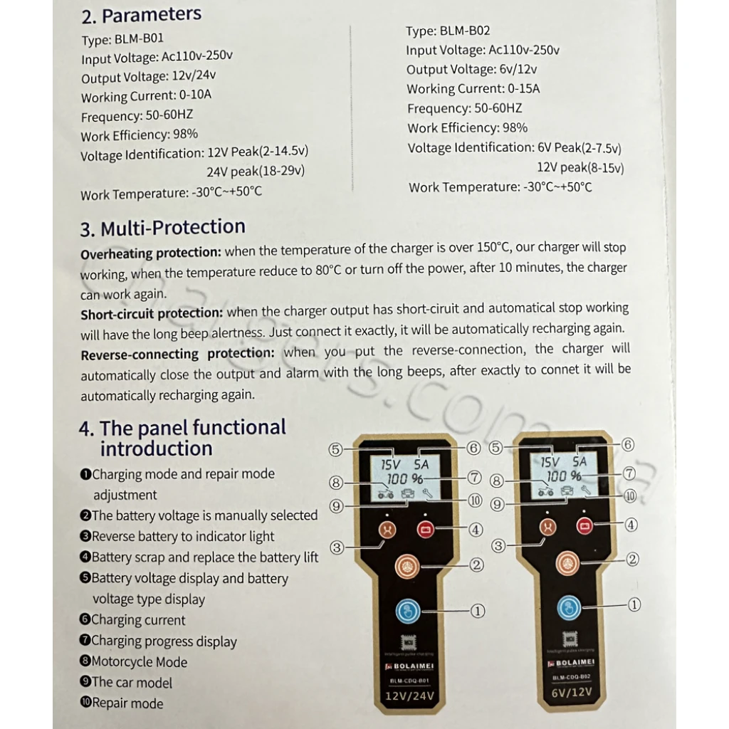 Автомобильное зарядное устройство Voltronic BLM-B02 6V/(2-20Ah) 12V/(2-150Ah) — современные Зарядные на 6 Вольт для 6В, 12V АКБ с режимами тока 0-15A. Подходит для MF, VRLA, WET, Свинцово-кислотный, EFB, AGM, GEL. Гарантия: 12 мес. Производство: Китай.