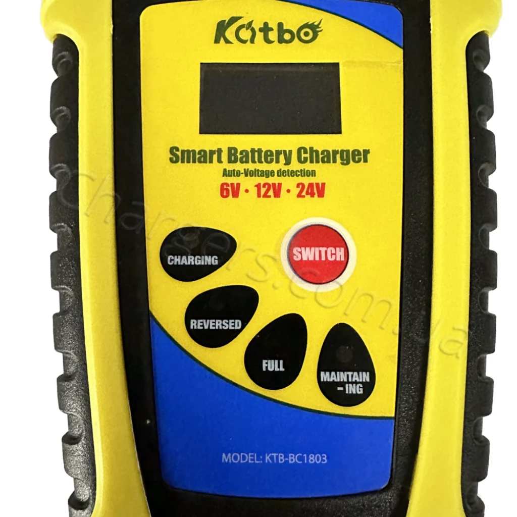 Импульсное зарядное устройство Katbo KTB-BC1803, ток заряда 2A/3A/6A — современные Зарядные устройства для 24В, 6V, 12V АКБ. Подходит для MF, VRLA, WET, Свинцово-кислотный, EFB, AGM, GEL. Гарантия: 12 мес. Производство: Китай.