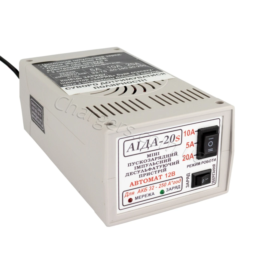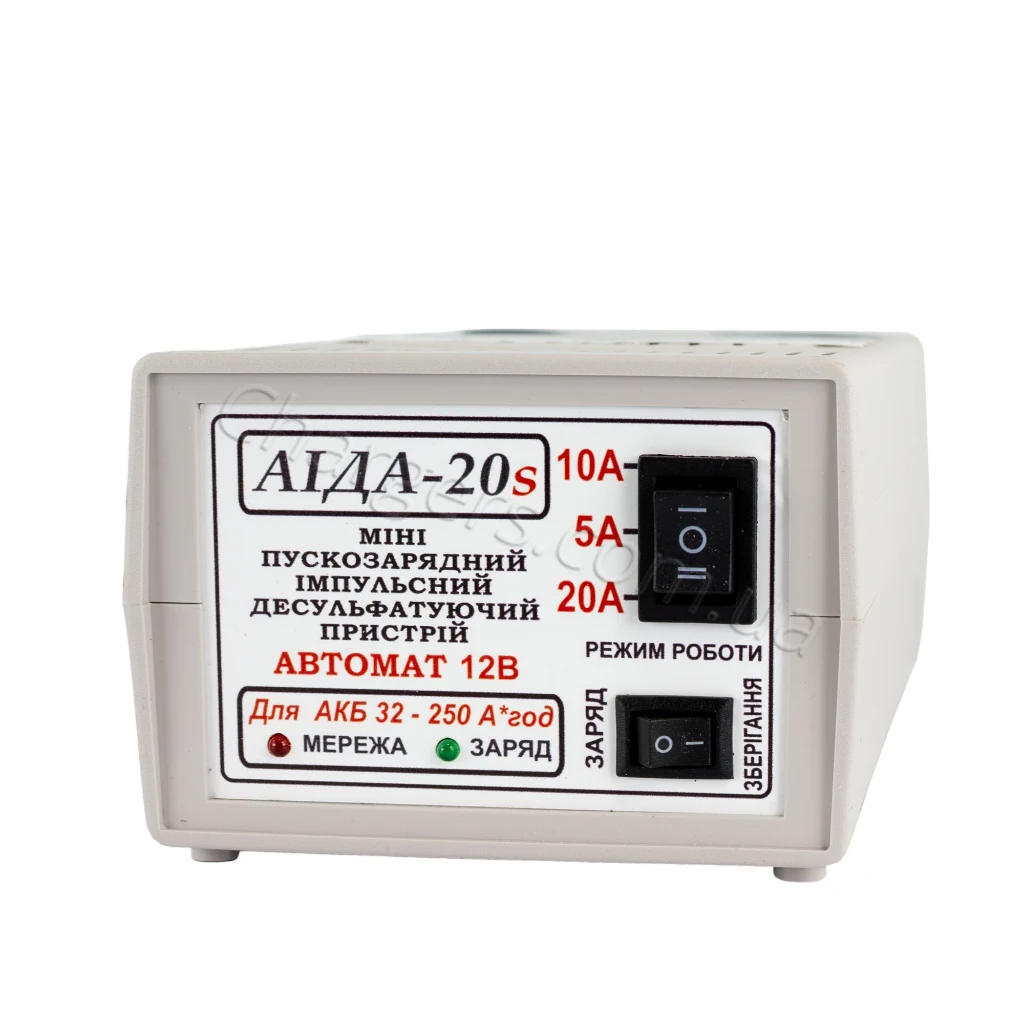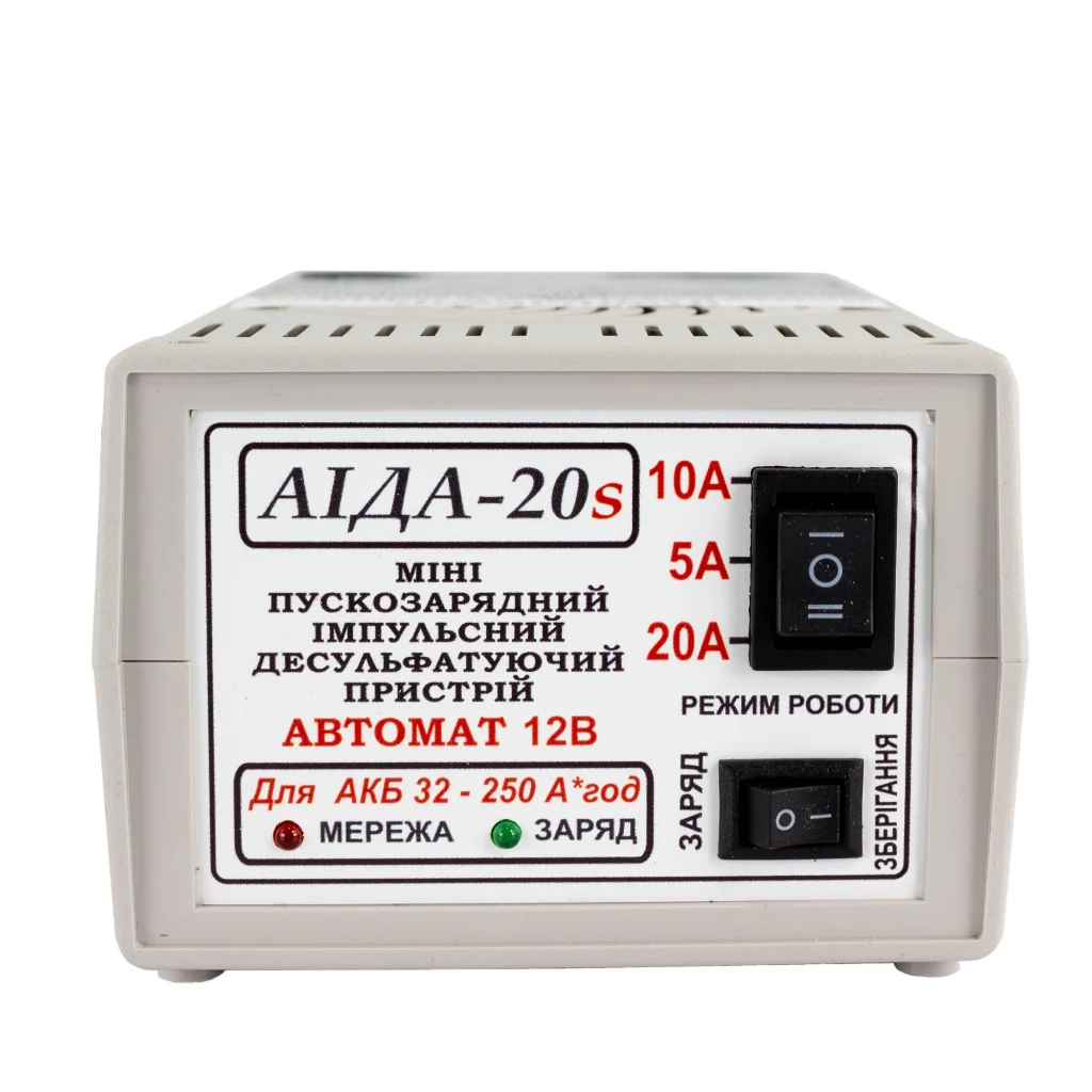 Пускозарядное устройство Аида 20s струм зарядки 5А/10А/20А — современные Пускозарядные устройства для 12В АКБ с режимами тока 5A, 10A, 20A. Подходит для MF, VRLA, WET, Свинцово-кислотный, EFB. Гарантия: 12 мес. Производство: Украина.