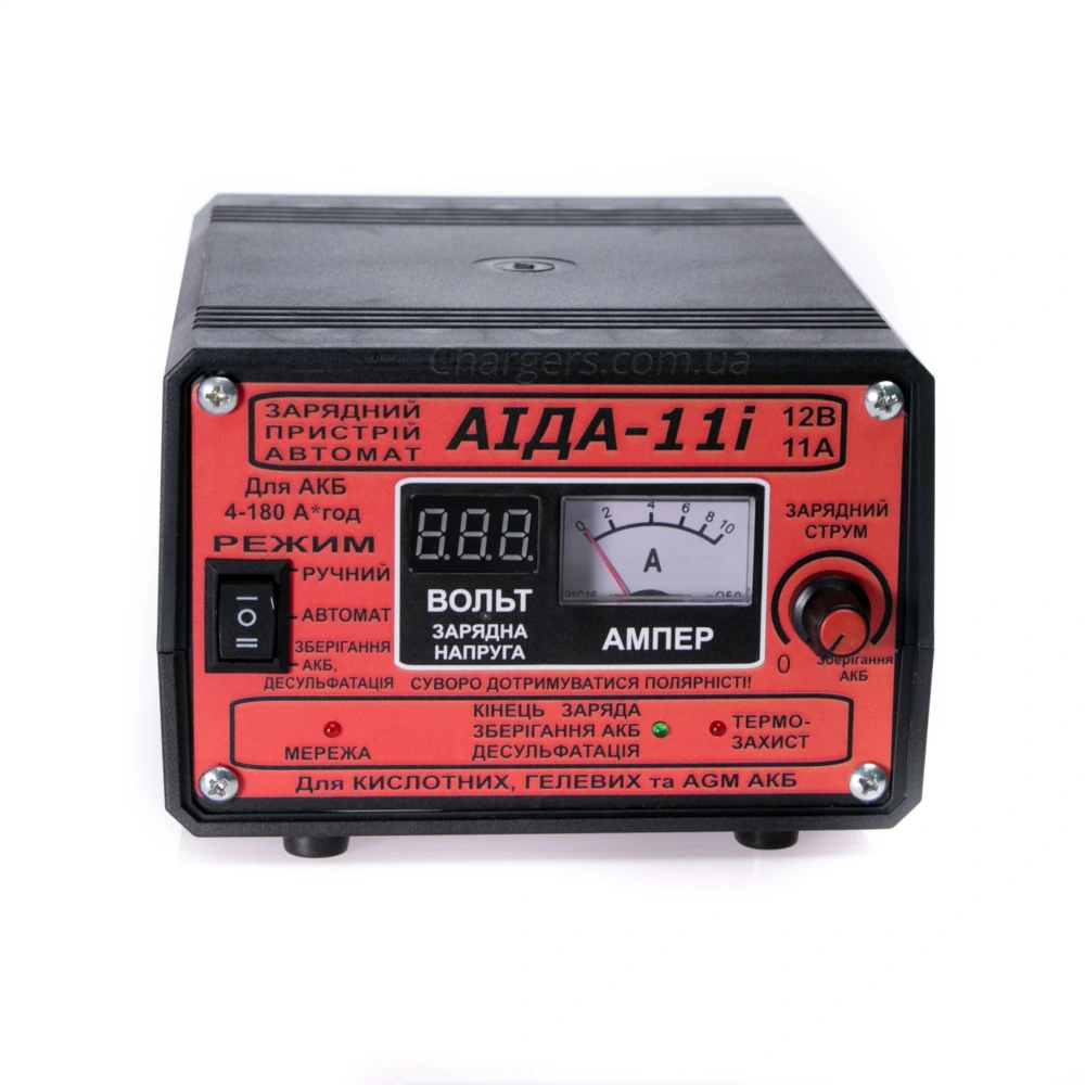 Зарядка Аида 11i с ручной регулировкой тока заряда 0-11А — современные Зарядные устройства для 12В АКБ с режимами тока 0-10A. Подходит для MF, VRLA, WET, Свинцово-кислотный, EFB, AGM, GEL. Гарантия: 12 мес. Производство: Украина.